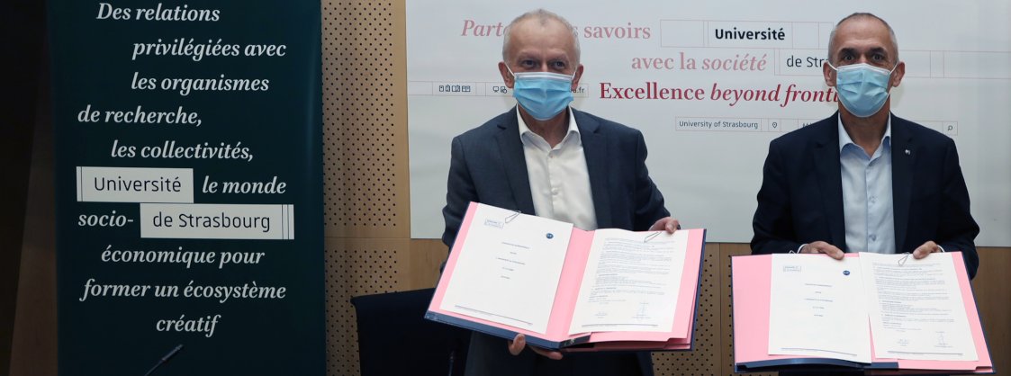 Lundi 23 novembre 2020 à Strasbourg, Antoine Petit, président-directeur général du CNRS et Michel Deneken, président de l’Université de Strasbourg ont signé une convention quinquennale de partenariat. Cette convention a pour objectif de préciser les éléments de la politique scientifique partagée entre le CNRS et l’Université de Strasbourg sur laquelle s’appuie leur partenariat, notamment le co-pilotage des unités de recherche, et sa mise en œuvre opérationnelle.