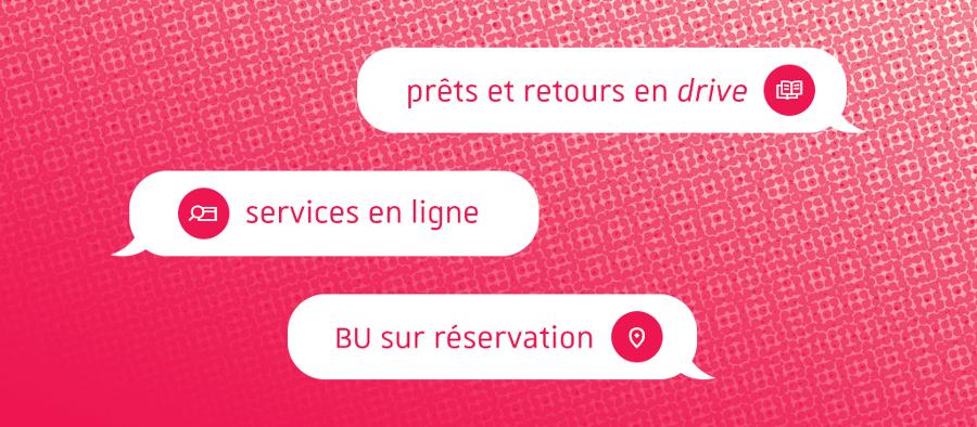 Suite au reconfinement national, les bibliothèques de l'Université de Strasbourg adaptent leurs services : le prêt en drive sur rendez-vous et le travail sur place sur réservation sont disponibles à partir du lundi 9 novembre 2020. Les ressources et services en ligne sont accessibles 24h/24, 7j/7. Retrouvez toutes les informations pratiques.